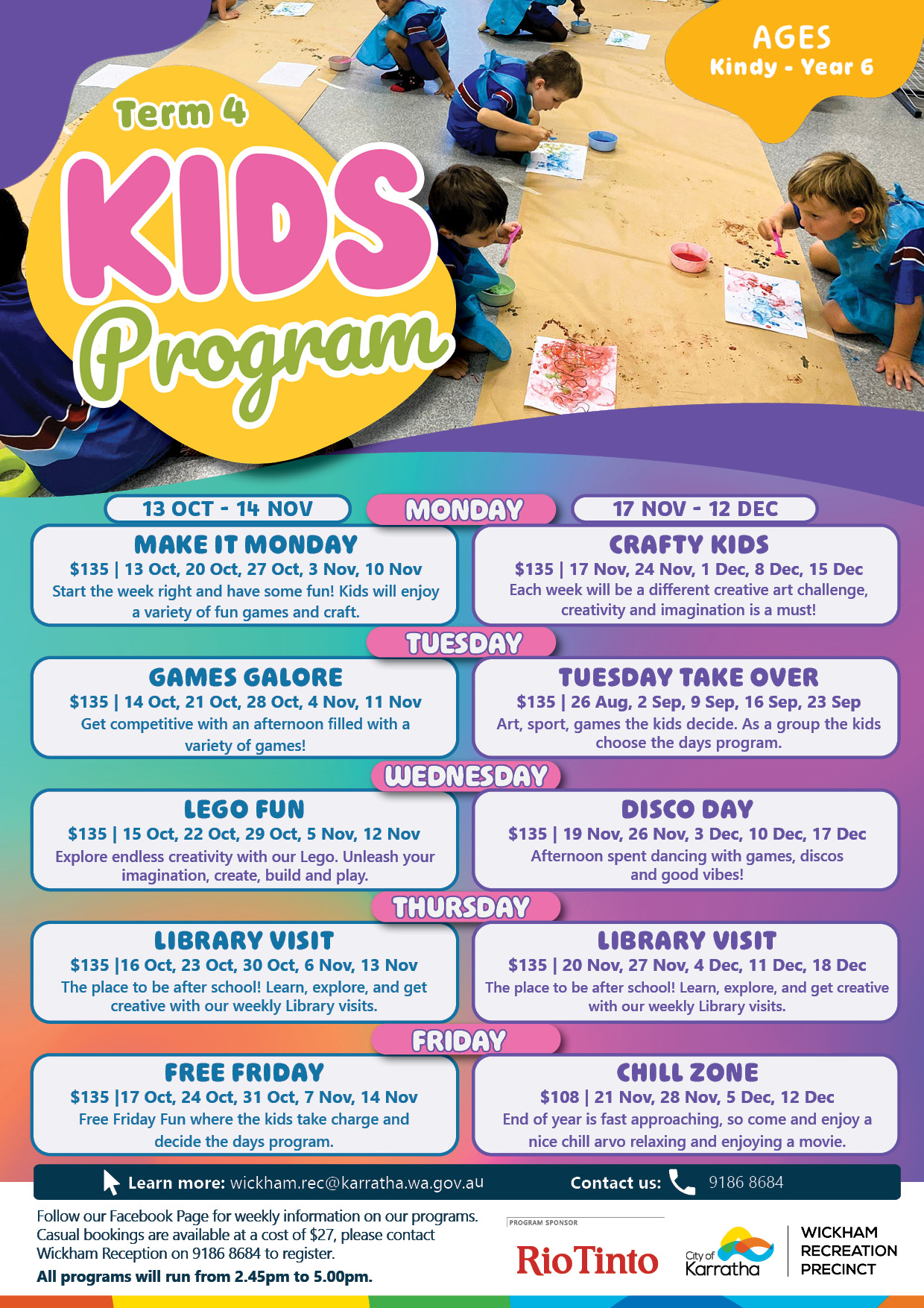 Complete the registration form and email to wickham.rec@karratha.wa.gov.au or call 9186 8684 to register.