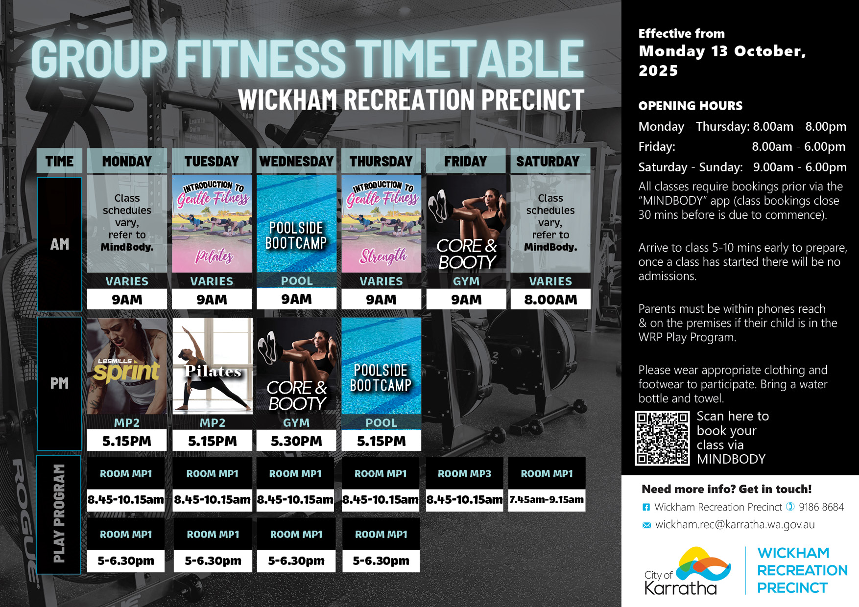 View the latest group fitness timetable below and find us on Facebook for the most updated information on classes.